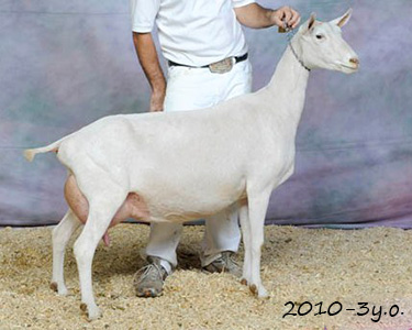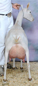 DD:  SGCH Des-Ruhigestelle Elentara 7*M (pictured on Ein’s page) LA 91 EEEE 2005 TOP TEN with 3719#/milk and 156#/butterfat(4.2%). 1st place 4-year-old, 2003 Nationals, 1st place/ 1st udder 5-6-year-old, 2005 Nationals.