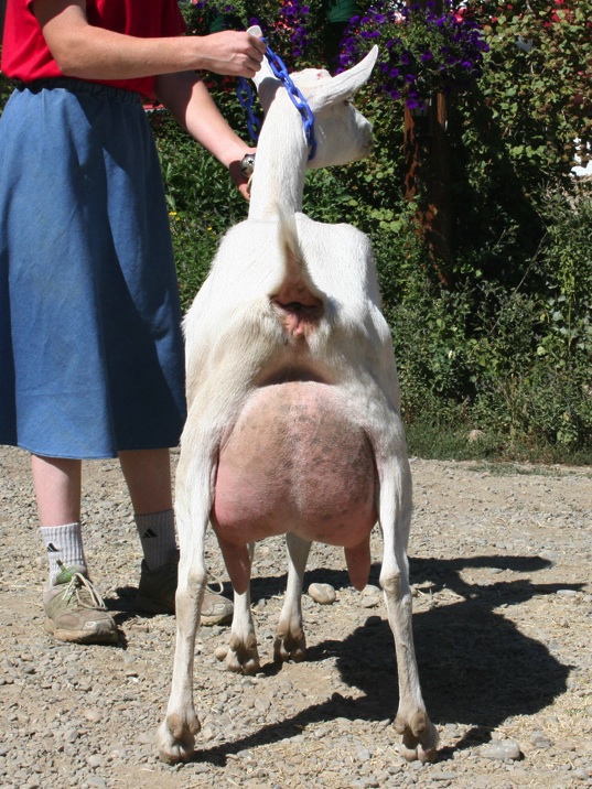 Titania was truly a foundation doe. She was a fantastic milker, with a long level lactation. As a 3 year old she produced 4200 lbs. of milk in 335 days and was Top Ten for Butterfat. She was 13th place 2 year old at 2005 Nationals and really outdid herself at 2008 Linear Appraisal, scoring a 92 EEEE. She one-upped herself at 2012 Linear Appraisal, once again scoring a 92 EEEE as a 9 year old doe!
